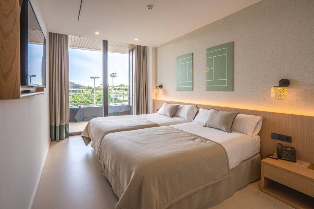 The Rafa Nadal Residence offers 92 bedrooms and three suites all of which are flooded with natural light. The suites, named Rafa Nadal and Roger Federer, offer separate living area and balcony overlooking the complex.