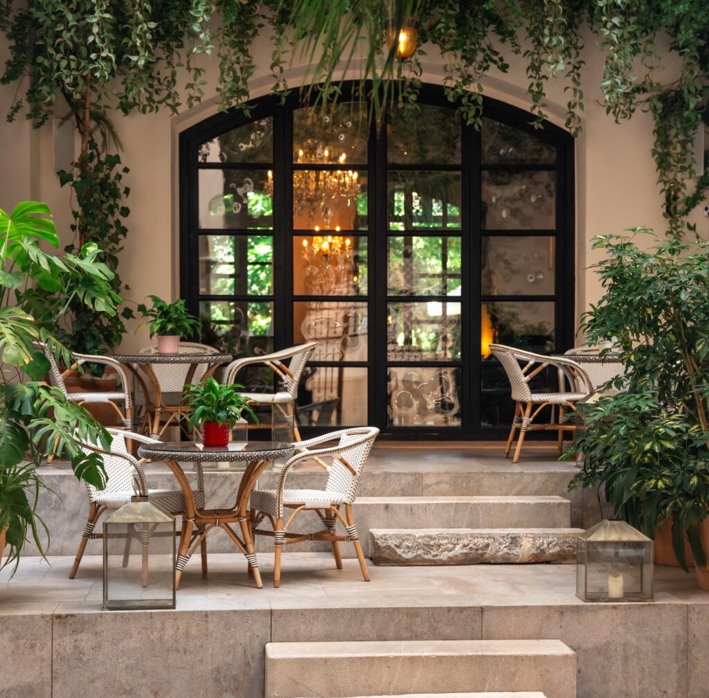 The grand courtyard entrance signals your arrival, adorned with seating and brimming with foliage, you will be welcomed by the smiling staff at the ready to ease you into your stay with a welcome drink after your journey.