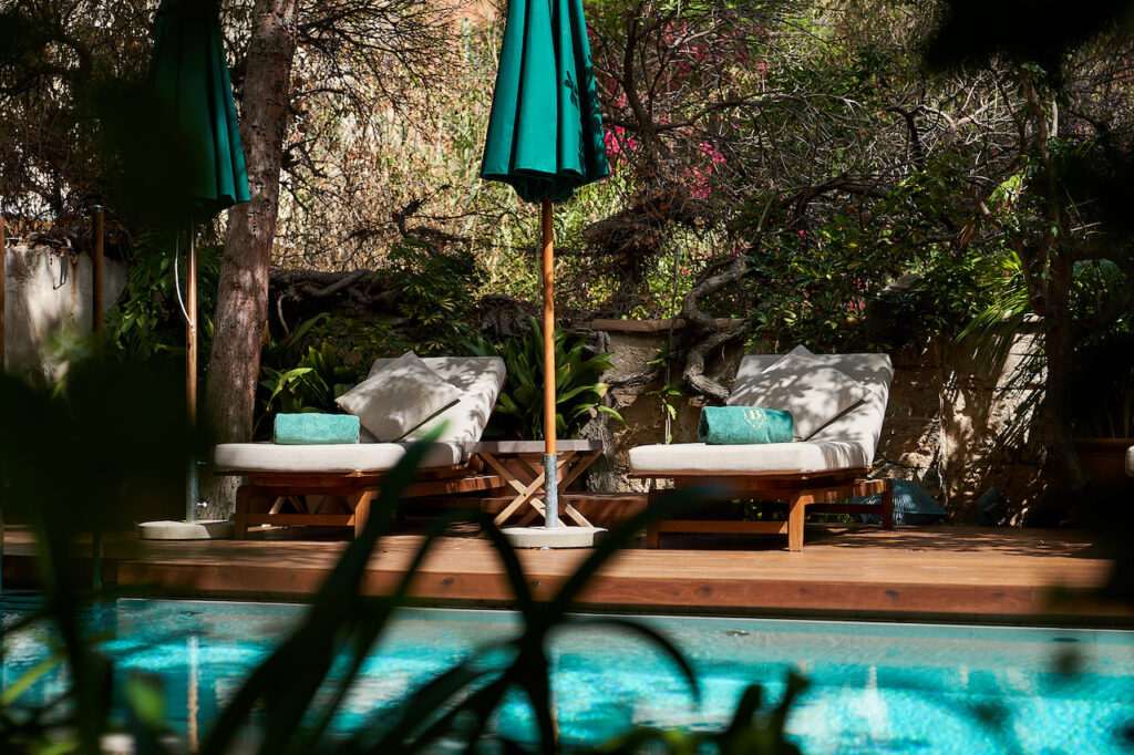 But it is the gardens that you are drawn too, the pièce de résistance of Can Bordoy. It’s mature walled garden – the largest in Palma’s old town – includes a heated pool with wave mechanism, comfy sun loungers and a curtained pergola for al fresco massages. Heaven.